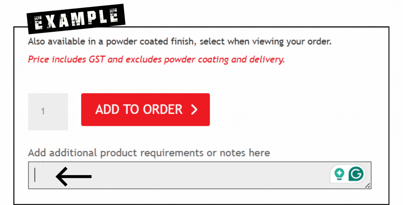 - Enter the code “easter” in the “Add additional product requirements or notes here” field (see example below)
